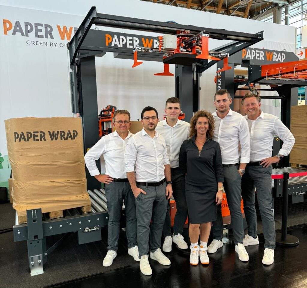 © PaperWrapPatrick Wagner (2.v.l.) und Philipp Ertl (2.v.r.) von EW Technology umgeben von PaperWrap-Kolleg:innen.